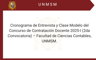 comunicadosCronograma de Entrevista y Clase Modelo del Concurso para la Contratación Docente de Pregrado en la Modalidad Presencial para Estudios Generales, correspondiente al Semestre Académico 2025-I (Segunda Convocatoria) de la Facultad de Ciencias Contables de la Universidad Nacional Mayor de San Marcos WPcontabilidad / 18 de marzo de 2025