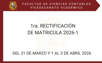 Comunicados 1ra. RECTIFICACIÓN DE MATRICULA 2026-1 Leer más RELACIÓN DE EXPEDITOS TSP (AUDITORIA) Leer más RELACIÓN DE EXPEDITOS TSP (GESTIÓN TRIB) Leer más RELACIÓN DE EXPEDITOS TSP (CONTABILIDAD) Leer más Convocatoria, Cronograma y Cuadro de Plazas Vacantes para la Promoción Docente 2026 Leer más RELACIÓN DE BACHILLERES EXPEDITOS (AUDIT) Leer más Cargar más