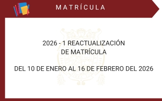 Matrícula Reglamento General de Matricula para Pregrado 2026 – 1 REACTUALIZACIÓN DE MATRÍCULA Leer más 2026 – 1 RESERVA DE MATRÍCULA Leer más EXAMEN DE APLAZADOS 2025-II Leer más PROGRAMACIÓN DE EXÁMENES FINALES – SEMESTRE 2025-II Leer más Duplicados de carnet Leer más ENTREGA DECARNÉ UNIVERSITARIO Leer más Cargar más